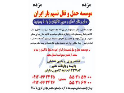 حمل و نقل  نسیم   بار ایران حمل کالا  از تهران  به سراسر ایران بی واسطه