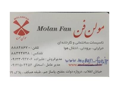 فروشگاه مولن فن در زمینه تولید انواع هواکش های سانتریفیوژ ، هواکش های آکسیال ، سقفی ، کانالی ، پخش و نصب پرده هوا، پخش لوله های خرطومی انتقال هوا از نوع آلمینیوم در قطر های مختلف ، ساخت و نصب انواع فیلترهای فن کوئل و یونیت های هواساز و هود های صنعتی فعالیت می کند.
