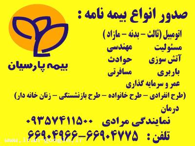 مشاوره و ارایه انواع بیمه از کلیه شرکتهای بیمه با مجوز و تحت نظر بیمه مرکزی جمهوری اسلامی ایران وکیل بیمه گذار در تکمیل فرم پیشنهاد و پیگیری پرونده خسارت و بدون وابست…