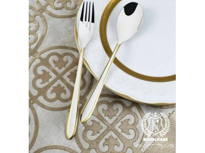 سرویس های قاشق چنگال ترکیبی نقره ای و طلایی رنگ