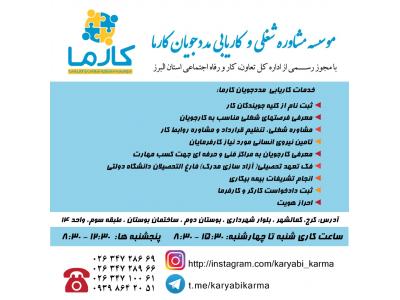 خدمات کاریابی مددجویان کارما اشتغال احراز هویت بیمه بیکاری ثبت دادخواست کارگر و کارفرمایی آزاد سازی مدرک تحصیلی فارغ التحصیلان کرج، کمالشهر ، بلوار شهرداری ، …