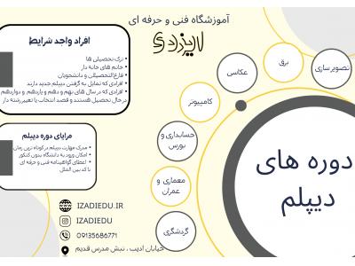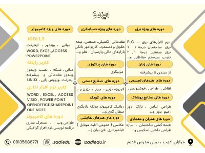 آموزشگاه فنی و حرفه ای ایزدی برگزار کننده دوره های: کامپیوتر معماری حسابداری عکاسی زبان انگلیسی. فرانسه.آلمانی.عربی و... چرتکه رباتیک نقاشی فن بیان برنامه نویسی عمران…