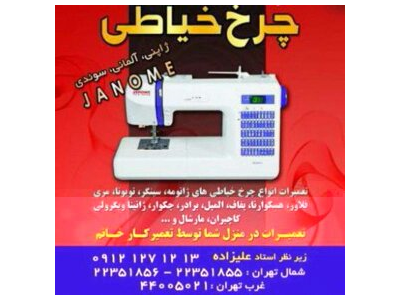 نمایندگی و تعمیرگاه مجاز چرخ خیاطی ژانومه در غرب تهران و شمال تهران زیر نظر استاد علیزاده در خدمت مشتریان عزیز میباشد و